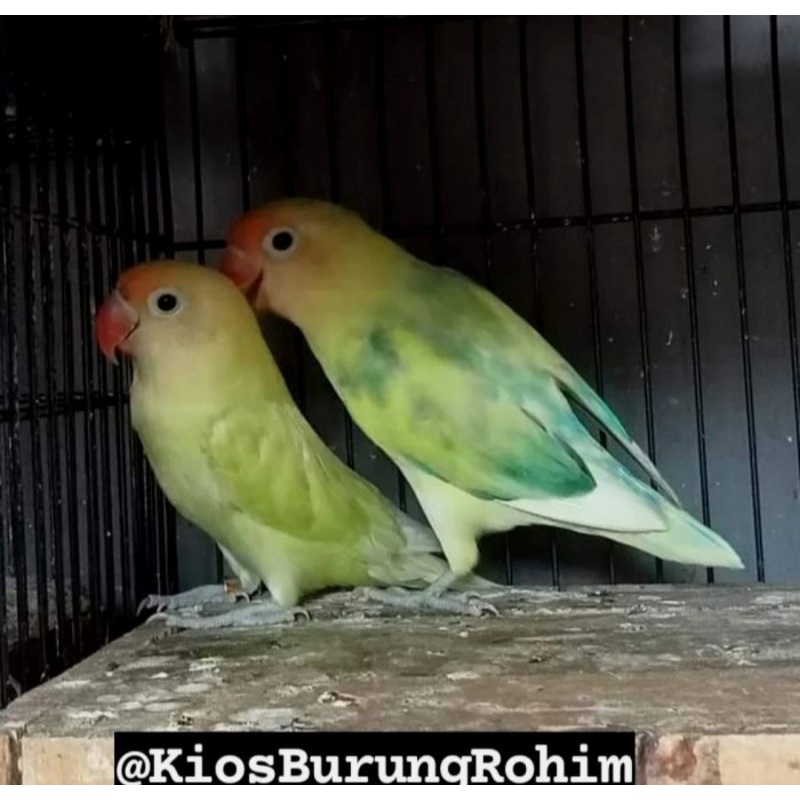 Jual lovebird pastel hijau sepasang rp 250.000.